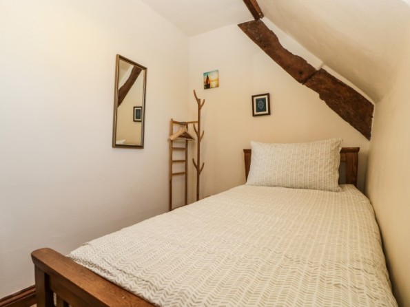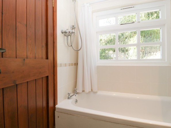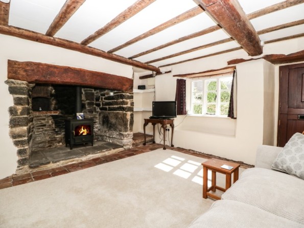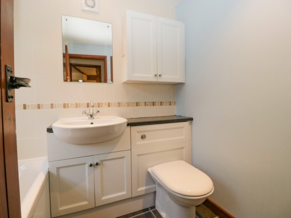Two bedrooms: 1 x double, 1 x single. Ground-floor bathroom with bath, shower over, basin and WC. Kitchen/Dining room. Utility cupboard. Dining room. Sitting room with decorative woodburning stove
