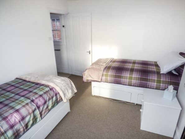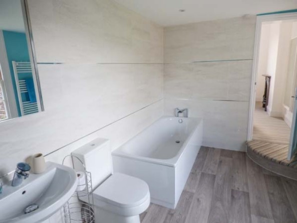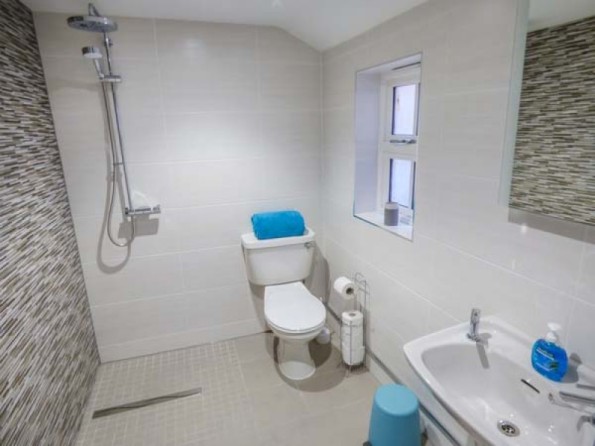 Two bedrooms: 1 x double with TV and en-suite bath, separate shower, basin and WC, 1 x twin (zip/link, can be king-size double on request). Ground floor wet room with shower, basin and WC. Kitchen. Dining room with woodburning stove. Sitting room with woodburning stove and sofa bed.