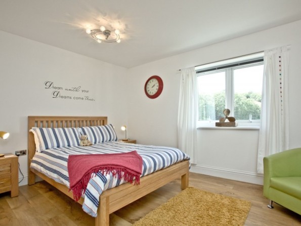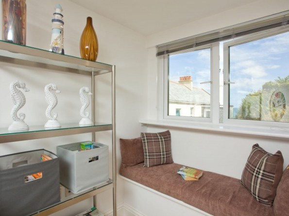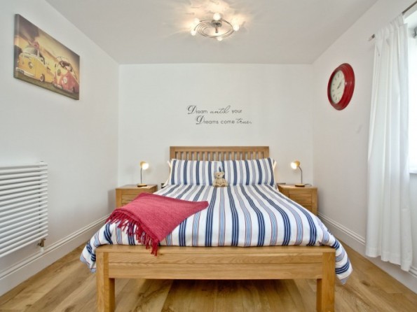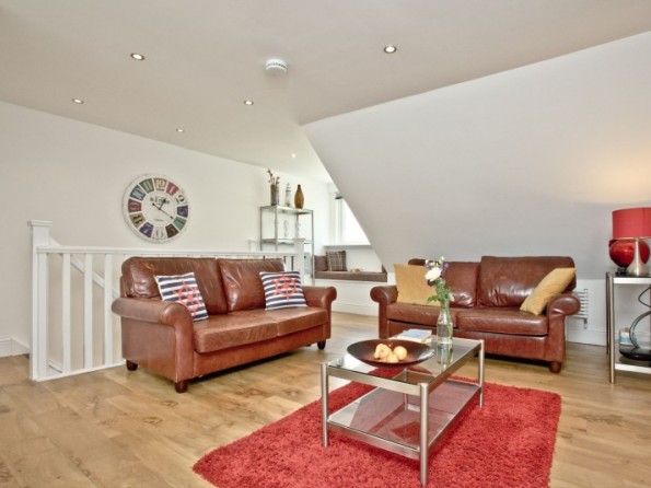 Arranged over two floors, 19 At The Beach is a taste of contemporary coastal living, with a spacious interior and stylish furnishings lending a luxurious feel to the property. Upstairs the large living / dining area is a welcoming space with angled walls that give an architectural flair to the room, and large windows at opposite ends basking the floor in natural light. A small window bench with sea glimpses makes the perfect reading nook or a great place to enjoy that first morning coffee, and a pair of tan leather sofas invite evenings of relaxation and socialising. Situated on the ground floor, the well-laid out kitchen is amply equipped for whipping up anything from a full English to a roast dinner, and a range of appliances and utensils make for a fuss-free stay that feels just like home. Sleeping four guests, the master bedroom is furnished with a solid oak-frame double bed as well as a comfy armchair and is located on the ground floor with one of the sofas in the living room converting to a double bed for additional sleeping.