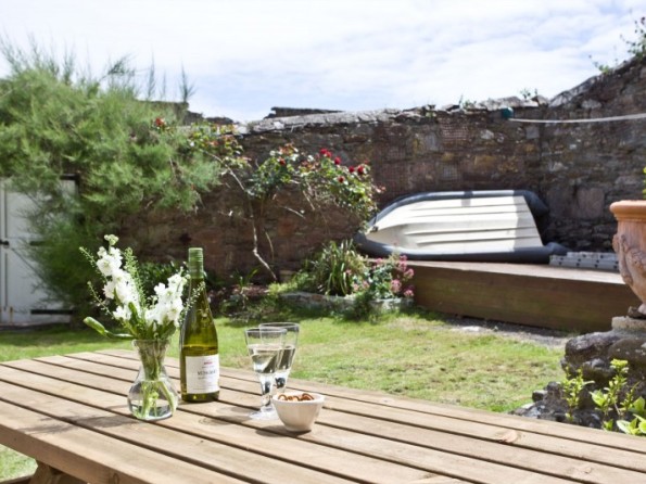 Access to the shared walled garden with table and benches