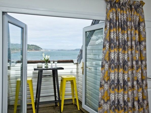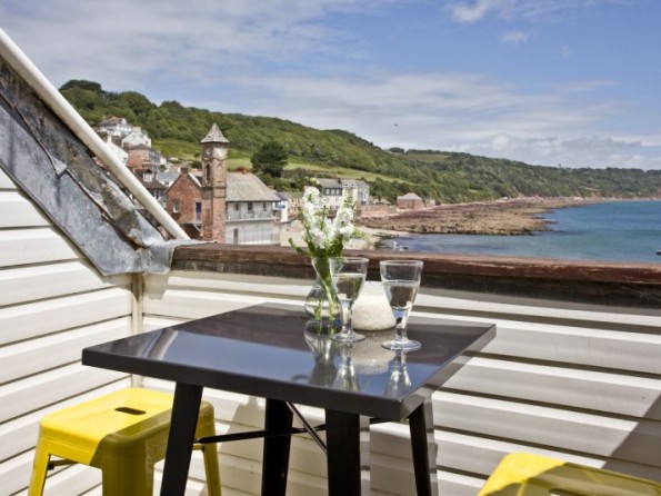 Balcony with sea views and table and chairs