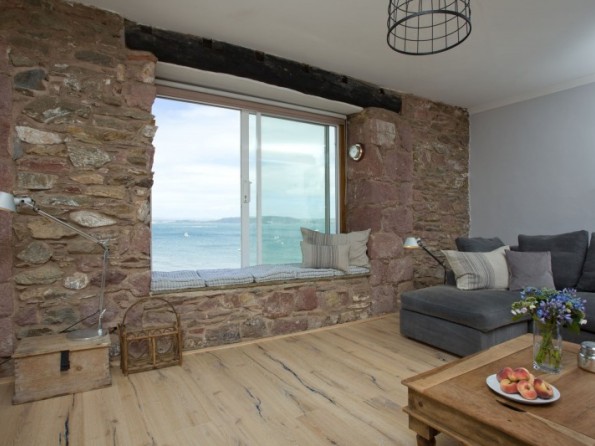 Sofa and window seat with sea views