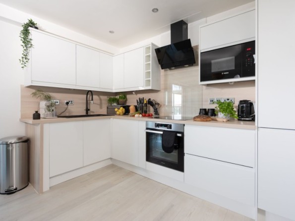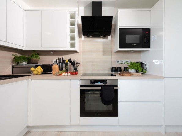 The modern kitchen is open plan with the living and dining area and features an electric fan assisted oven, induction hob, microwave, fridge, freezer, washing machine, tumble dryer and dishwasher. A range of crockery, cutlery (children's cutlery as well) and cooking utensils is provided as well as smaller appliances that include a mixer / blender, Nespresso coffee machine, toaster, kettle, vacuum cleaner, iron and ironing board