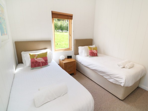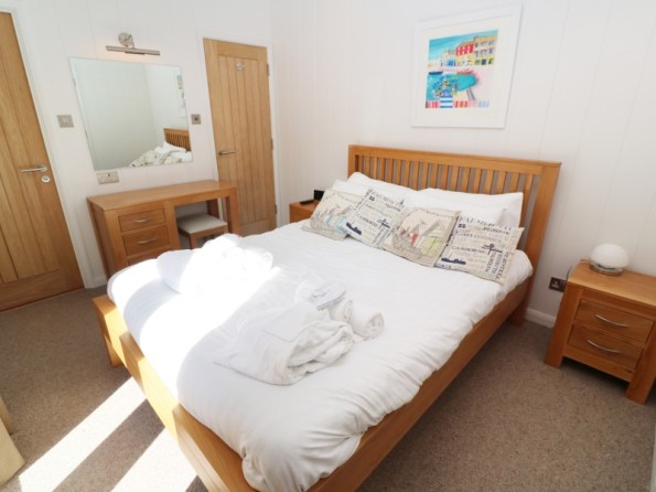 All ground floor. Two bedrooms: 1 x king-size double with TV and en-suite shower, basin and WC, 1 x twin. Bathroom with bath, shower over, basin and WC. Open plan living area with kitchen, dining area and sitting area.