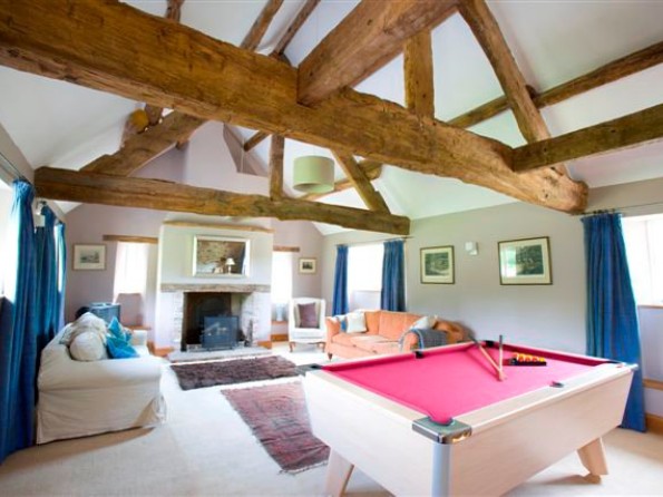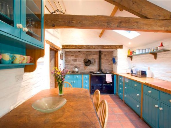 Bedroom 1 on the top floor has a king sized bed and a large en-suite bathroom, Bedroom 2 is a double with a shared bath/shower room, and Bedroom 3 is a twin room with an extra single bed in it. The cottage also has a sitting room, a dining room, a drawing room and a kitchen with an Aga. There is a Jacques pool table and indoor table tennis table. Blaencwm’s bespoke kitchen offers an ideal space for preparing culinary masterpieces. There is a door leading into the sitting room/ dining room with further dining seating for 8. The kitchen door opens out to the sheltered South East facing terrace overlooking the garden, a perfect spot for breakfast and lunches.