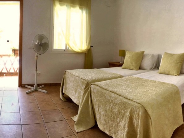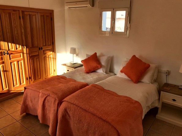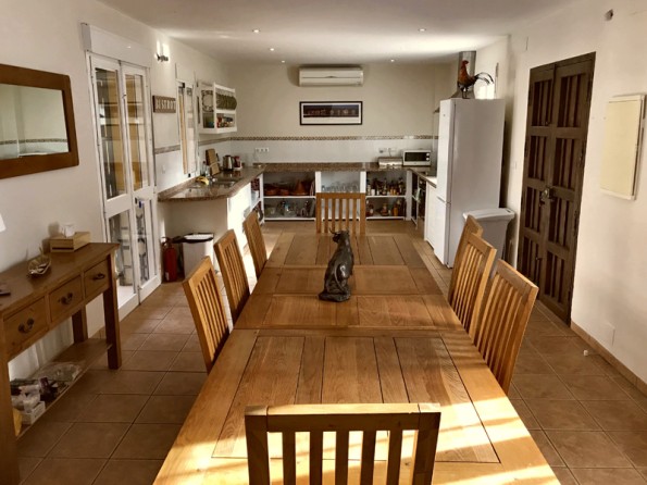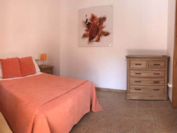 Kitchen with fan oven, fridge-freezer, dishwasher, 5 sq m granite food prep. surface, full range pots, pans, cutlery, Moroccan tagine and Spanish ceramic cooking ware. Dining-room with blue Moroccan table seating 8, plus stereo radio with MP3 compatibility. Sitting-room with wood-burning stove, comfortable sofa and arm-chairs, book-shelf, writing-desk, TV/DVD, Wi-Fi broad-band connection. Green bedroom overlooking pool with twin beds, plus dressing room and bathroom. Blue and Red Bedrooms overlooking pool, each with twin beds, dressing-room and wet-room with shower. All showers have glass splash panels. Also on the ground floor a roomy Garage (will hold 4x4), laundry Room with washing machine and tumble dryer plus steam ironing and an entrance Lobby with hanging for outdoor clothes. The first floor is home to the master Bedroom with twin beds, large hanging cupboard, writing table, bathroom, and a reading Gallery with bookshelves.