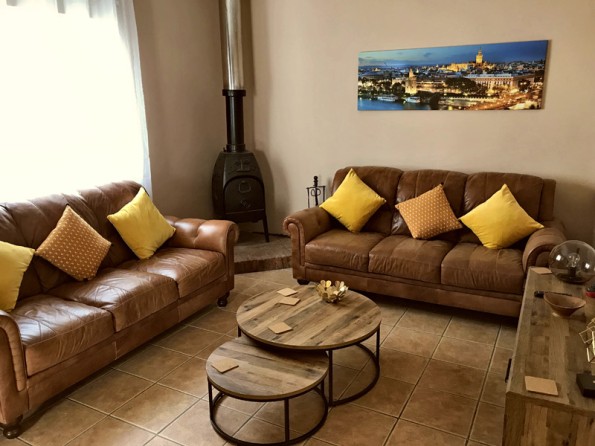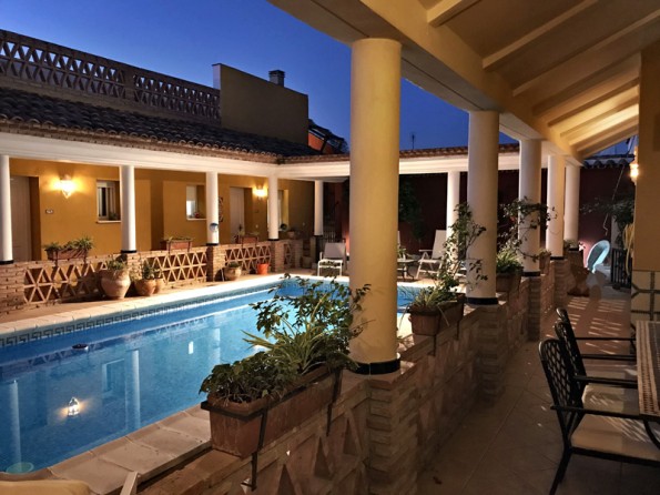 Outside, a simple finca in the austere Andaluz style. Inside, Casa Uno opens out into a large, luxurious colonnaded villa with a huge kitchen and all facilities, accommodating up to 8 people in 4 bedrooms, with 5 bathrooms and a garage, set around a central atrium with its own secluded, solar-heated and safety-gated swimming pool. Lying within the magic triangle of Andalucía’s ancient Moorish cities – Córdoba, Seville, Granada – and with the Spanish motorway system only 3km away, Casa Uno is expressly designed for the enjoyment of the pleasures of life. Your own house to relish, relax and unwind in. Personal space to dream in and recharge creative batteries. For those in search of larage villas to rent in Spain, this is an excellent base for exploration and adventure with all the delights of Spain’s ancient but exuberant civilisation near at hand.