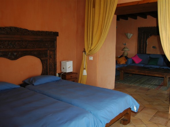 Each house sleeps 2 – 5 people and has been designed with a care and attention that make them stand out from other hotels. There are Colonial iron and glass lamps, silk material, Victorian baths, arabic tiles saved from old Andalucian patios and arched volcanic ceilings. In each house you enter into an exquisite and special atmosphere. Colour schemes and decoration reflect an eastern approach, created by using natural pigments along with locally obtained stone, lava and tiling. Also all the materials used are non toxic and ecological, from natural oils to nurture the wood of ceilings and doors to lime stone for washing the thick stone walls of the building. The furniture was mainly imported from Indonesia and the solid teak wall hangings and other features result in an elegant decorative theme. Each suite is equipped with satellite television and a music system.