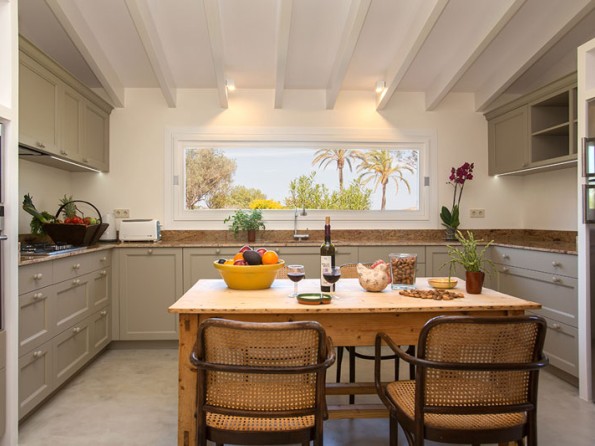 For fifteen years the owners have been living in and renting their farmhouse in south east Mallorca, where beautiful unspoilt countryside is characterised by small villages and fields of almond, olive and fruit trees enclosed by old dry stone walls. Sheep bells and birdsong are the soundtrack to daily life here, and the dramatic mountains of the Sierre Levante and the tiny monastery of the Consolacio form an impressive backdrop. Look south from the terrace to the Mediterranean, where two large sandy beaches await just 10 minutes away by car, or wander into the traditional hill village of Alqueria Blanca (population 800), with its charming village square, friendly bar, local shops and restaurants. Whether you’re here for a family holiday or a party it’s the perfect spot.