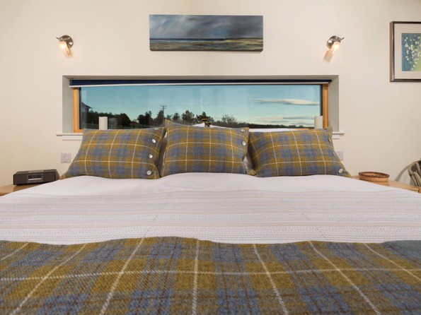 The longhouse sits on a croft which has been in the owner’s family for generations and in 2013, they finished building this new house so that everyone could enjoy a genuine home-from-home experience in exceptional surroundings. The building has an unquestionably luxurious and contemporary design, and yet it is clear that sustainability, energy-conscious technology and the local environment were at the forefront of the building approach. In an ideal location to explore the island, the house is set low on the hillside with views in every direction. Through the floor-to-ceiling windows watch the weather change throughout the day, soak up the views south towards Broadbay, and watch the stunning arc of the sun, rising in the east over the bay and setting in the west over the moors.