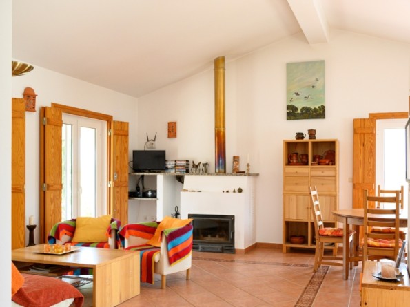 There are two bedrooms (one double and one twin), both well furnished and both with French windows leading on to the terrace. Bedroom one has an ensuite bathroom and there is another separate bathroom. The open plan living, eating and kitchen area is spacious, nicely decorated and well equipped. Three French windows are leading out to the terraces. The cottage is being powered by solar energy and providing all the necessities of life including under floor heating. You will also be able to enjoy a wood burning fire in the cooler months and will find a fully equipped kitchen and well appointed bathrooms.
