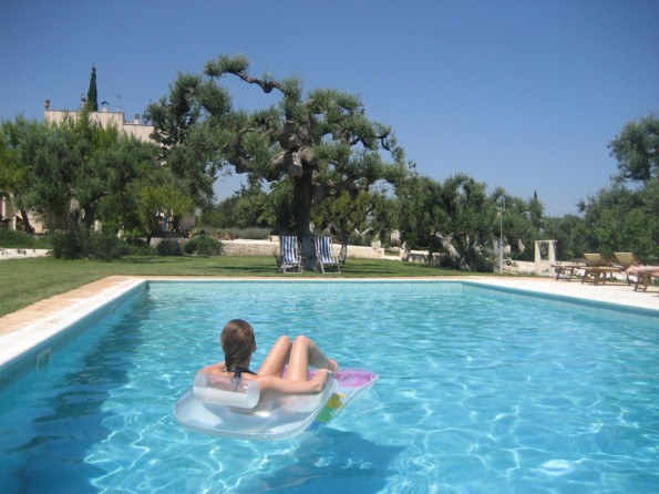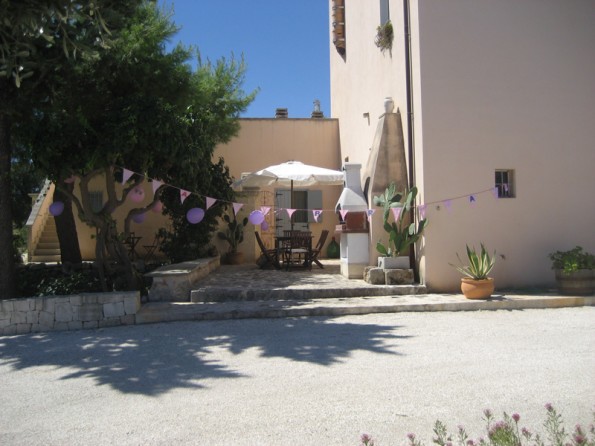 The Masseria has extensive private gardens surrounded by farmland with the most beautiful views. There are many terraces some with sea views. Shady and sunny areas in which to relax. Many tables and chairs. Hammocks in the trees. The private outside swimming pool measures 14x7mtrs and is heated by the sun and is available to all our guests (of the villa, the B&B and the apartment which are on site). Opening times depend on the temperature but usually Easter to October. It is surrounded by a large terrace and lawns furnished with luxury sunbeds and tables. There is a large outdoor kitchen with a barbeque and a wood fired pizza oven. two gazebos with tables and chairs. Outdoor games. An outdoor toilet and 2 showers. Ample secure parking.