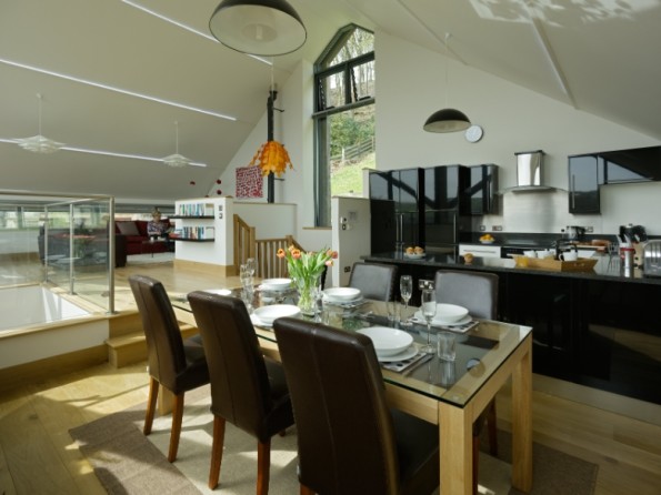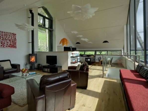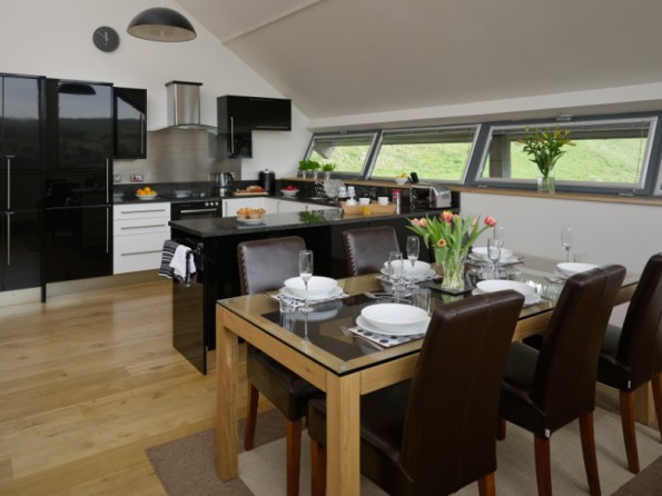 Re-built in 2008 from the remains of an original stone barn, this contemporary new home now has an abundance of glass, solid oak floors, granite worktops, bespoke LED lighting and a large stone flagged terrace for alfresco dining. Free WiFi internet is provided. The barn provides fabulous upside-down accommodation with window seats in the living area capturing dramatic views and original barn openings providing windows in the bedrooms downstairs. Carefully planned to offer luxurious eco-friendly accommodation, this superb holiday home provides underfloor heating from a ground source heat pump and has a heat-recovering ventilation system to keep the air fresh without losing heat. Solar photo-voltaic electricity generation system to further reduce its carbon footprint.