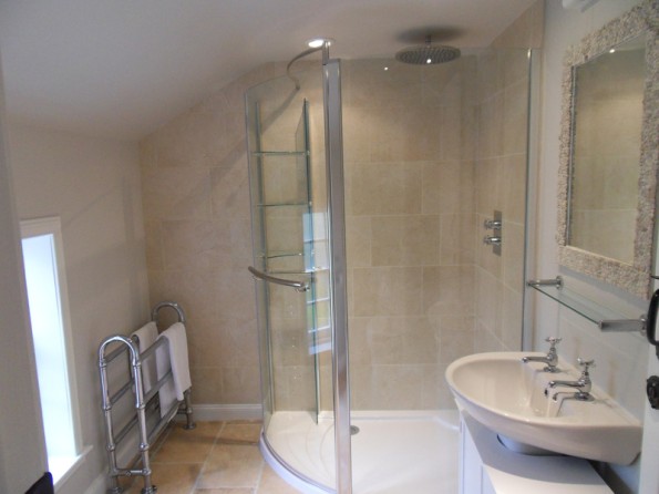 There are two ground floor bedrooms, one double beside the bathroom and one twin/double with direct access to the garden. An open staircase leads to the galleried landing and provides access to a small loft dressing room and study area. Double doors from the garden open into a spacious garden room with window seats and dining area, and double-height sitting room with exposed beams, upholstered sofas and wood-burning stove. The kitchen is equipped with everything from an electric range cooker, fridge freezer and quiet dishwasher, to a coffee grinder, cocktail shaker, weighing scales and electric mixer. The ground floor bathroom includes a low threshold rainfall shower. The cottage has travertine tiles with underfloor heating throughout the ground floor. A Nespresso machine, smart TV with HDMI, USB ports and Freesat channels, radio/stereo/CD player with Bluetooth and an Alexa compatible speaker, free WiFi, USB charging sockets and a small collection of books, games and DVDs/CDS help to make you feel at home should you choose to closet yourself away or snuggle up with a good book or a loved one in the cooler months.