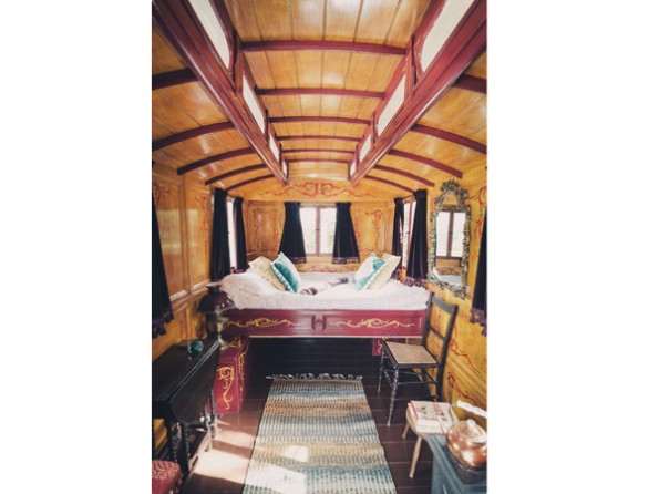 Rosie the 1885 Showman’s wagon has been beautifully restored and painted by one of the last trained gypsy wagon painters in the country. Sitting overlooking a woodland garden on the grounds of a working pottery, she offers a truly eclectic B&B experience for those with a spirit of adventure!