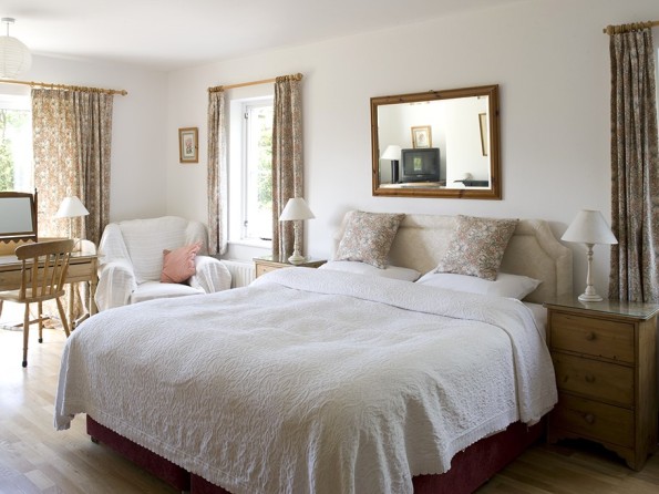 Spacious six bedroom house. Two bedroom suite downstairs, both with ensuite bathrooms. Two bedroom suite upstairs, both with ensuite bathrooms. Both ideal for families. Double bedroom with ensuite bathroom and twin bedroom with private shower room. Large well equipped kitchen with separate laundry room. Comfortable south facing living room which is full of light and sunshine during the day. Ideal for reading, working or playing ! Downstairs loo. Open fireplaces in the living room and both downstairs bedrooms. There is sky TV and fibre optic wifi throughout.