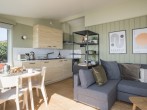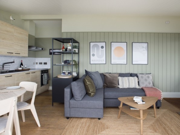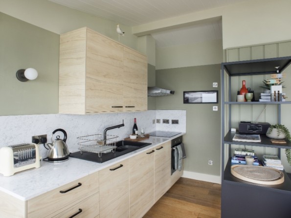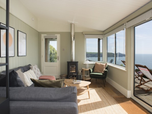 Shamrock has recently completed its long-awaited refurbishment and is ready to welcome back its holiday guests, old and new. Using a warm palette of Cornish inspired colours, the cabin has been redecorated throughout to give a fresh modern feel to the interior and a modern kitchen has been fitted with the addition of a slimline dishwasher. Inside it's all about comfort. The cabin comprises a living room with a wood burning stove and a large comfortable sofa, a fully fitted kitchen and dining area, a modern bathroom and a double bedroom with king size bed with views through to the sea. The sofa in the living room pulls out as a double bed which means the cabin can accommodate 4 adults. That is if you don't want it all to yourself!