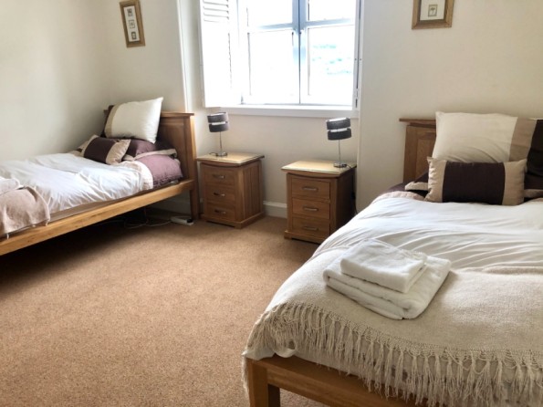 On the ground floor there is a living room with an open fire and a wooden floor. There is also a spacious kitchen/dining room and a games room (with slate bed pool table), both of which have open fires too. There is a separate toilet on this floor. On the first floor there are 3 bedrooms – 1 double with a 6ft bed, 1 double with a 5ft sleigh bed and a twin room – and a bathroom. And on a second floor there are 3 further bedrooms – 1 with a double bed and a balcony overlooking the loch, 1 double with an en-suite shower, and 1 twin. There is a separate shower room with a toilet.