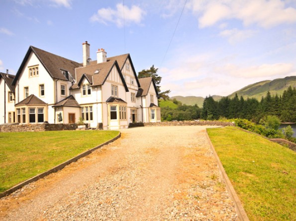 Resting on the banks of Loch Katrine in the heart of the Loch Lomond and Trossachs National Park, Stronachlachar Lodge is a unique six bedroom holiday house which offers cosy open log fires, beautiful contemporary living spaces and superb views across the water.
