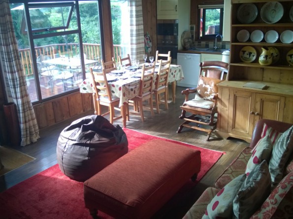 There is a vast deck adjoining the front of the cabin, fully equipped to relax and eat out doors with stunning views of the sea and surrounding countryside. In addition there is plenty of parking with a garage and storage space.