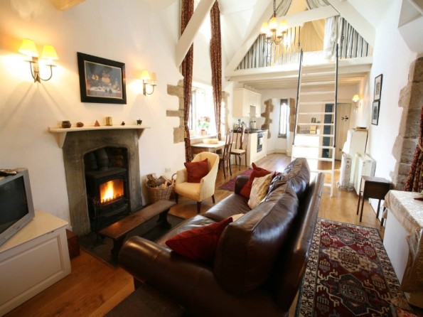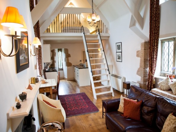 The Gatehouse accommodation has a charming, loft-style living area with a deep leather sofa and a wood burning stove, as well as a TV with Freeview, a DVD player, and a CD player with iPod dock. The delightful gallery bedroom is accessed by a companionway ladder, and you can even climb up to the top of the tower to the viewing platform.