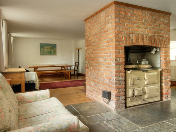 The rectory sleeps 16 in 4 double rooms, 2 twins (1 leading off a double) and a very large dormitory style room containing 4 single beds. The coach house sleeps 14 in 3 doubles, 1 twin and a large room with 4 beds. The pool house sleeps 4 in two bedrooms, one twin and one double. The houses have 4 bathrooms between them. Both of the larger houses have traditional farmhouse kitchens with Agas, long wooden tables, exposed wooden beams and everything you might need for large scale catering. The dining room in the rectory seats up to 22 but the games room (aka the Pyworthy old village hall) can seat 28 and also has a small stage and an organ. There is a large living room with an open fire in each house.