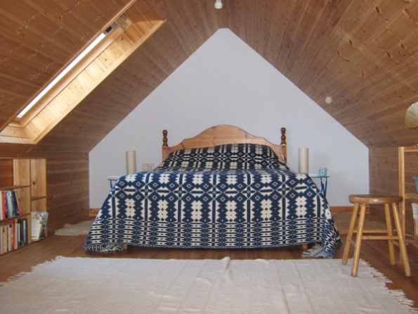 The Studio has a large loft bedroom with a double bed, a kitchen/sitting room (with a double sofa bed if required), and a shower room. Cooking is on an Everhot cooker (a bit like an electric Aga), there is a fridge-freezer, heating is provided by electric radiators, and amenities like a hairdryer and iron are included. There are radios, but no TV, so you really can enjoy a few days of proper peace and quiet without constant modern distractions.