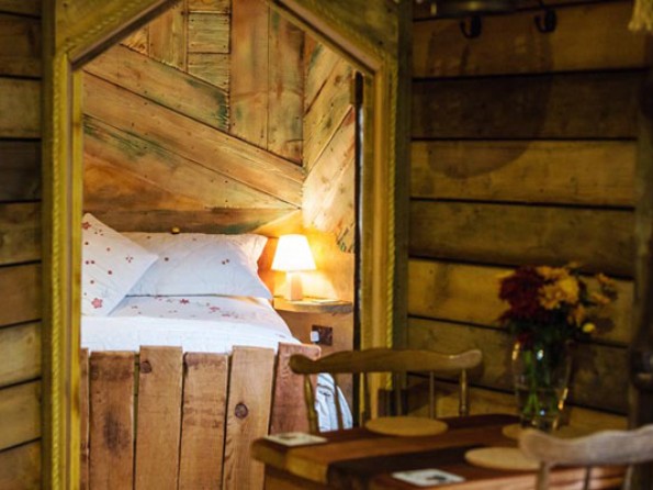 If you`ve ever dreamt of sleeping up in the trees then you`ve come to the right place. Here you can stay in a treehouse in style! Six metres off the ground amongst willows, conifers and fruit trees, the house is crafted almost entirely from driftwood gathered on a local beach and is made up of two hexagonal pods joined together, which sit upon two tree trunk pedestals. Boasting an unbelievable array of mod cons and little luxuries, it is hard to believe, once you`re inside, that you`re in a treehouse! This is the ultimate romantic glamping in England experience just for two.