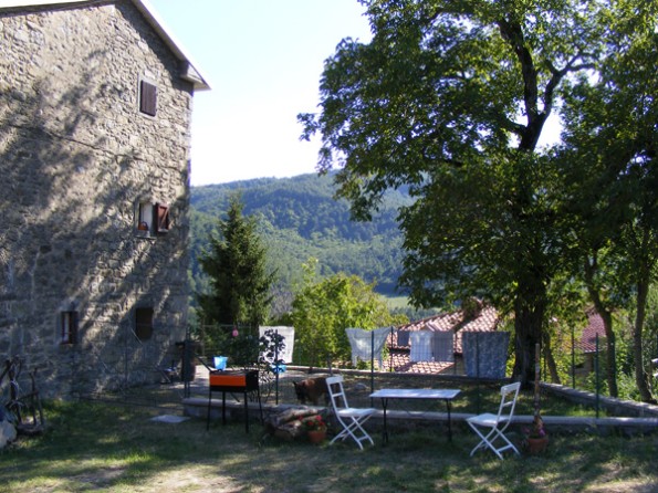 There is a small private space immediately in front of the house which is just right for a table for two. There is also some shared land to the side of the house which can be used for parking and dining. The house is in a tiny village and during the summer months there is a weekend pizzeria just 5 minutes away. The views from the house onto the Monte Nero national park and down the valley are absolutely stunning.
