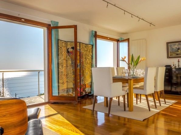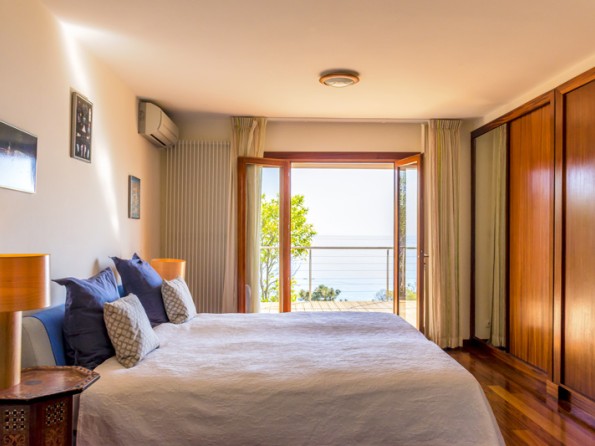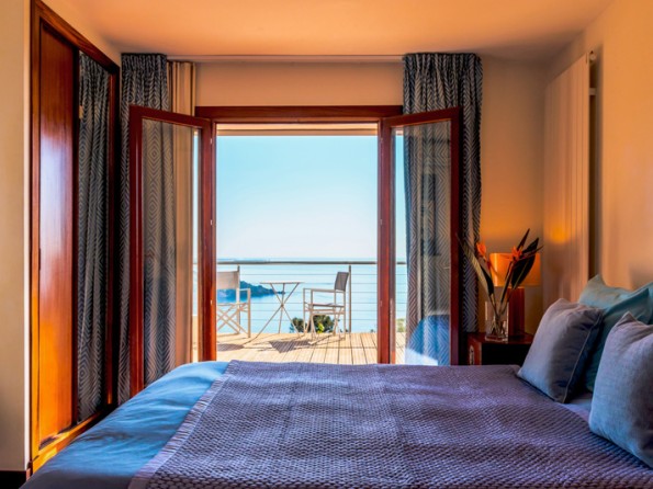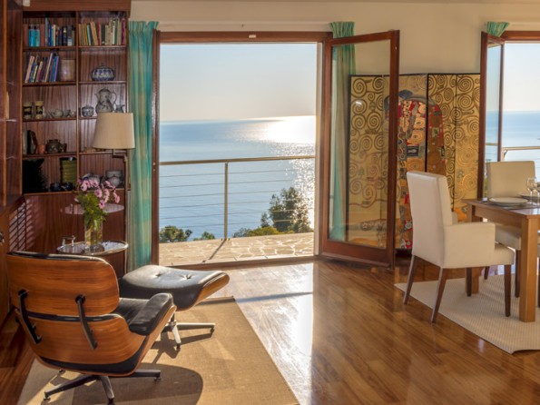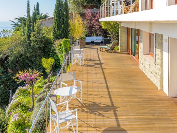 Lovely villa with dazzling sea views, heated swimming pool, beach 2 min., 3 bedrooms (one with fireplace), 3 bath/shower-rooms, very large living area (living room with fireplace, dining area, library, internet area), designer kitchen, Designers Guild interior, terraces, garden, garage.