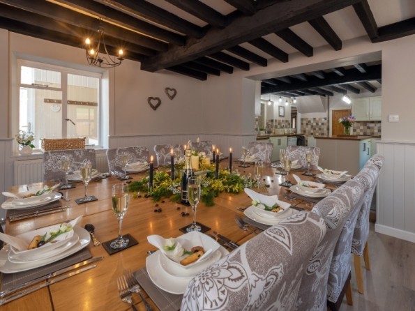 The house has eight bedrooms, seven of which are en-suite. The kitchen/diner is extremely well-equipped, with a double oven range and seating for 16, and down the corridor is a large games room with pool table, table football, board games and a TV. Opposite this is the library, perfect for relaxing with a coffee and the paper, and just off the hall is a large living room with a wood burning stove and a flat screen TV.