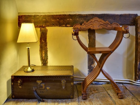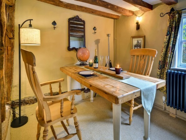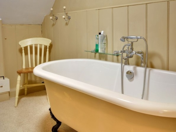 The cottage sleeps two people and is simply oozing character, with its old oak beams and cosy feel. Downstairs is a large farmhouse kitchen with a range cooker, butler sink and rustic table. Head through the hall to the spacious sitting room with inglenook fireplace and the dining room ‘snug’. The staircase leads from the sitting room up to the king size bedroom. There is also a dressing room, which leads through to the bathroom with a wonderful claw footed roll top bath. Wifi, TV, DVD, ipod dock and masses of CD’s DVD’s and books included.