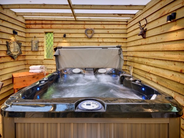 The cottage has a fully enclosed private courtyard garden which has a fabulous ‘indoor-outdoor’ room with a luxury hot tub, charcoal BBQ and table and chairs for al fresco dining. Bikes are provided free of charge for you to enjoy exploring the local lanes during your stay. There is a fully secure two acre meadow for our four-legged guests to run around and play with each other, along with seating for the two-legged guests to chat as well! There’s a smaller section inside for nervous or older dogs to exercise on their own.