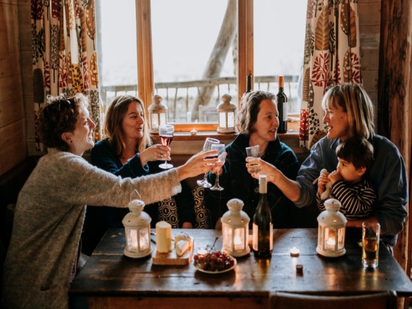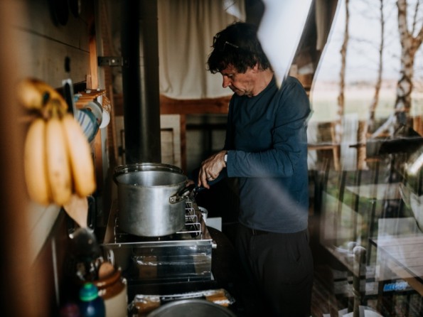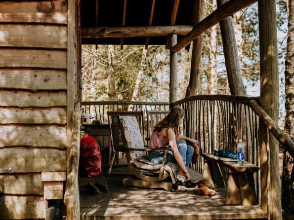 Each lodge sleeps 7 people – 2 in a king-size on the upper mezzanine level (from where you can gaze through the skylight at the stars), 3 on single beds nestled in the middle mezzanine, and 2 in a secret double bed beneath the middle mezzanine (with a curtain for extra privacy!). The lodges are styled with a mixture of handmade and preloved artefacts. The rest of the lodge is taken up with an open-plan kitchen area with wood burner, gas rings, sink and shelving, a homely lounge area where you can have dinner or curl up and enjoy the warmth from the fire and a wooden veranda to enjoy the rolling Yorkshire hill views. A separate room houses the bathroom which has a flushing toilet, a gas-powered hot water shower and a sink. The lodges are furnished with a diverse mixture of handmade and up-cycled items and everything from the crockery to the wood-burning stoves come together to create your own intimate little house in the woods. The lodges are un-electrified, perfect for a digital detox and quality time together with loved ones (wifi and sockets are available in the residents' lounge). As you can see, a holiday in a cabin does not have to be abstemious and uncomfortable!