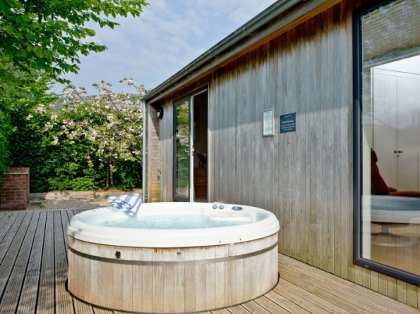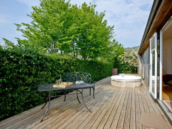 French doors open out on to a large, private deck where you’ll discover your very own hot tub with wonderful views of the Mendhip Hills and beyond. Lie back and soak the hours away or indulge in a bottle of something bubbly and watch the sun set – pure bliss.