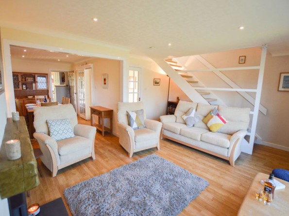 The large windows bring the outside in, the views of the loch are breathtaking, and at the back there is a private lawned garden with a BBQ and furniture.