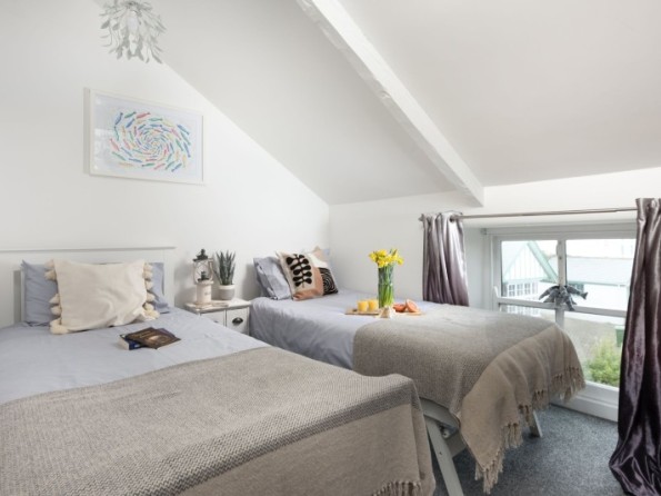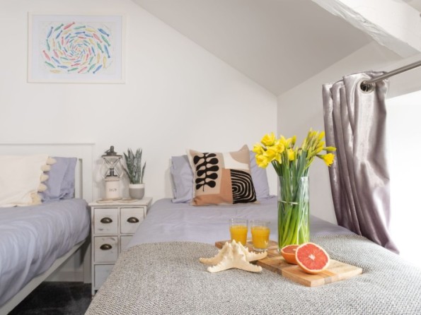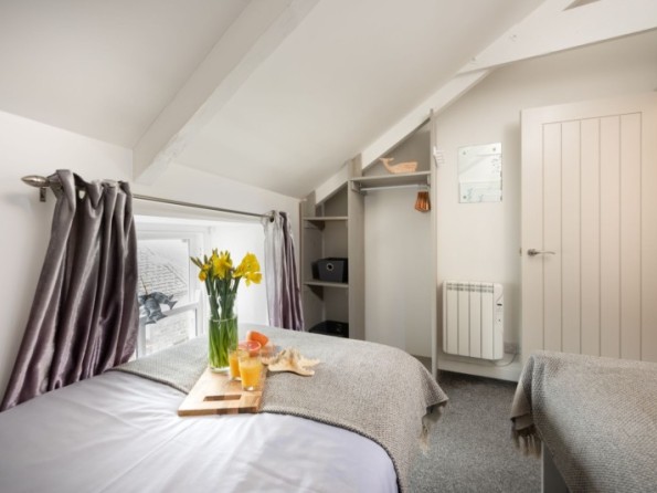 Named after the Cornish for ‘the small cottage’, An Dyji exudes the charm and character you’d expect from a traditional Cornish abode. Set over three floors, the cottage has been lovingly renovated to create a bright yet relaxing space with calm hues and subtle coast-inspired furnishings. Come together in the open plan living area to enjoy a freshly brewed cup of coffee or whip up eggs and bacon in the kitchen before heading out to explore. On cooler nights after a hearty meal in one of the local pubs, you'll be able to get cosy on comfy sofas in front of the fire and take in a good film or two.