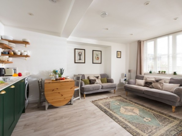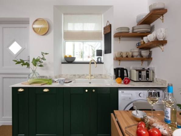 Open plan with the living and dining area the kitchen also has access to the back of the cottage via a stable door