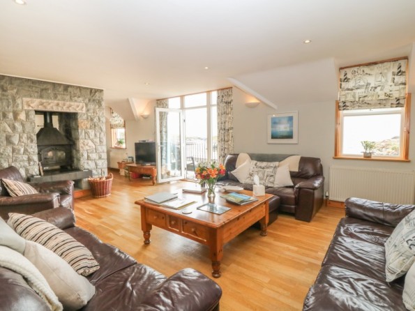 Anchorage House is a detached house very close to the sandy Porth Diana beach at the Southern end of Trearddur Bay on the Isle of Anglesey. Set over three floors, this cottage boasts four bedrooms comprising of a first floor double with en-suite bathroom and three ground floor bedrooms; one family room with a double and single bed and two twin bedrooms, as well as a ground floor family bathroom. The first floor consists of a living room with a log stove, a dining area, a fitted kitchen and a balcony with sea views. The basement comprises of a shower room, sauna and spa pool. Outside, the cottage has off road parking for two cars and a garden with patio, furniture and BBQ. Anchorage House is perfect for families and ideal for exploring Anglesey.