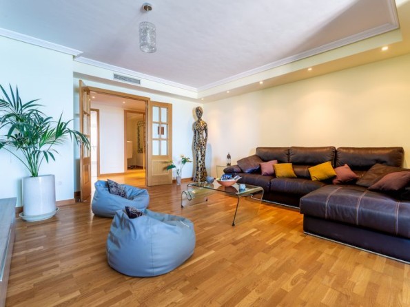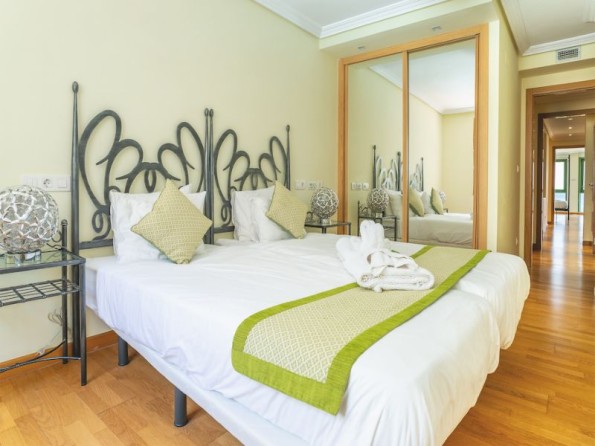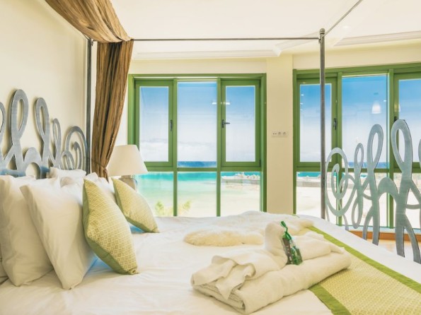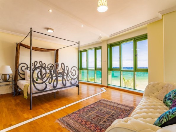 The apartment has been furnished to a very high standard, with floor to ceiling windows that let in the light and the exceptional views over the beach and bay. In the lounge there is a seating area for six, the lounge opens onto the dining area and there is also a well-equipped kitchen. There are three bedrooms altogether – the spacious master suite has a king size four poster bed, a sofa area and an en-suite bathroom with walk-in shower, there are two further twin/double rooms and there is another shower modern bathroom. There is a fibre optic WiFi internet connection throughout.