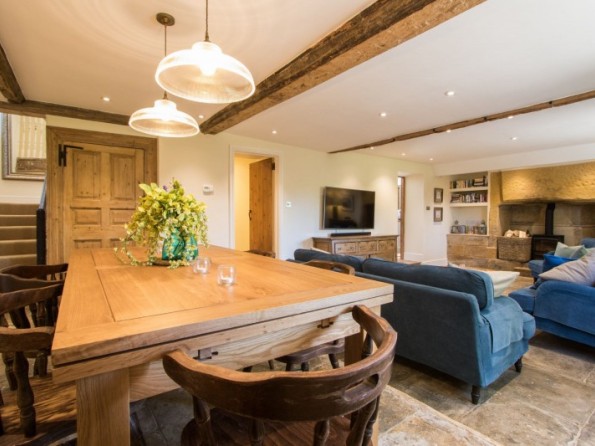 With original oak beams and stone floors leading to the large fireplace that still retains markings from days gone by, you can hunker down on cool evenings, warming your toes in front of the cosy wood burning stove with a mug of hot chocolate and favourite holiday read.