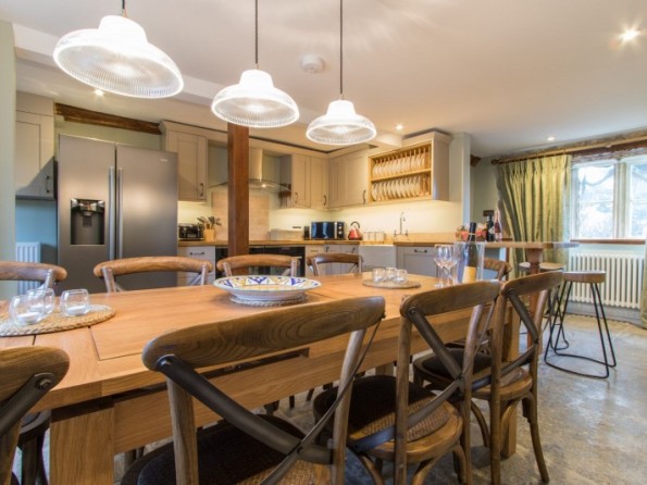 The open plan kitchen and dining room is made for hearty meals surrounded by family and when plates are clean and glasses are empty, you can sink into sofas telling stories into the night huddled around the cosy wood burner.