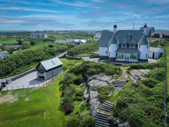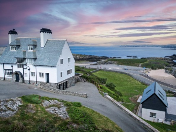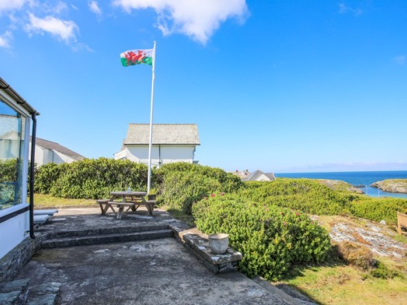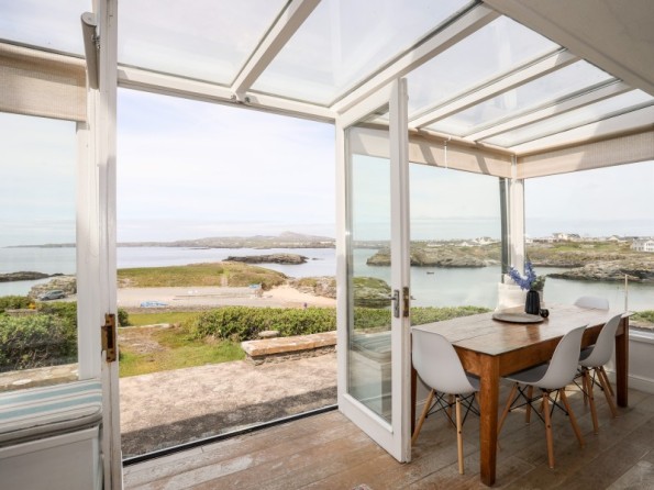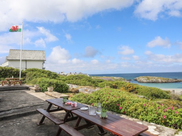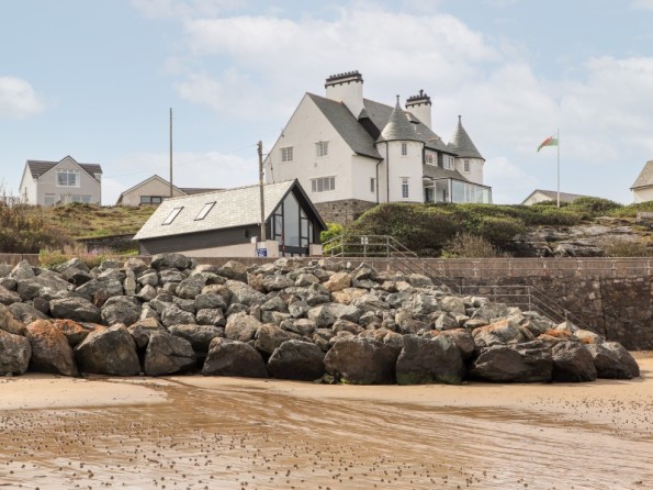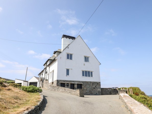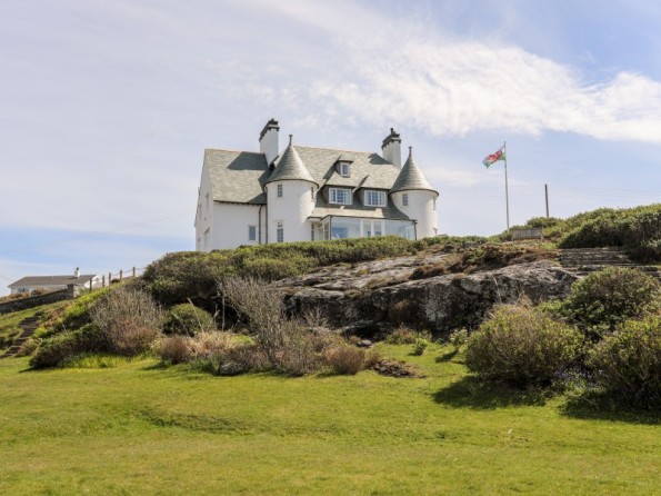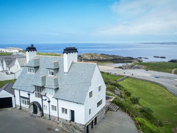 A grade II listed home resting on the seafront of Porth Diana in Trearddur Bay, Wales. Three-storey. Sea views. Large garden. Holyhead 2.9 miles; Beaumaris 25.9 miles; Bangor 25.9 miles.