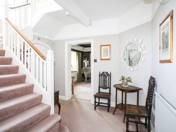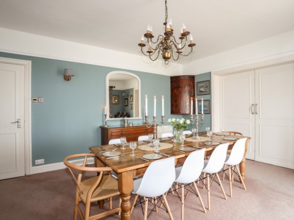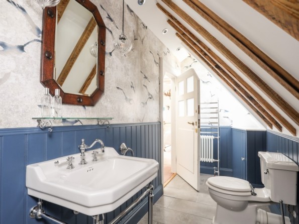 Over three floors. Seven bedrooms: 1 x double with en-suite shower, basin, heated towel rail and WC, 1 x double with basin, 1 x second-floor double with basin, 1 x double, 1 x twin, 1 x single with basin, 1 x second-floor single with basin. Bathroom with bath, shower over, basin and WC. Second-floor shower room with walk-in shower, basin and WC. Cloakroom with basin and WC. Kitchen. Utility. Dining room. Sitting room with open fire. Conservatory with dining seating for 6