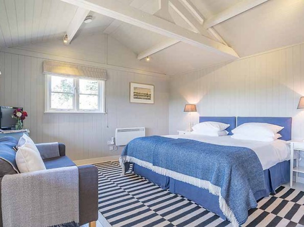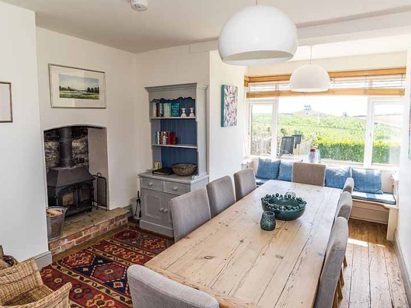 The bright and beautiful interiors of the house feel much more spacious than you’d expect from the outside and the house has been elegantly decorated in light colours. The sitting room has plenty of cosy, comfortable seating for all the guests, a TV, and a log burner fire to keep everyone warm. There are three double bedrooms, and two of these have zip and link beds which can be rearranged into two singles. Two more people can sleep in the separate log cabin which has its own en-suite bathroom and the house itself has a main bathroom with shower and bath, an en-suite with a shower for one of the bedrooms, and a downstairs WC. The log cabin is modern and well-presented with a bench on the sheltered front porch where its guests can take in the views without ever stepping entirely outside. The kitchen is fully equipped and up to date with range cooker, microwave, dishwasher and fridge freezer and the dining table has seating for up to eight people. A little ‘snug room’ and study with a desk, sofa, and TV provides a lovely retreat within a retreat and the house has Wi-Fi. The absolute best thing about this property though is the views you can see from the windows. The incredible views of the countryside that stretch for miles will make guests feel as if it is all theirs to explore and enjoy.