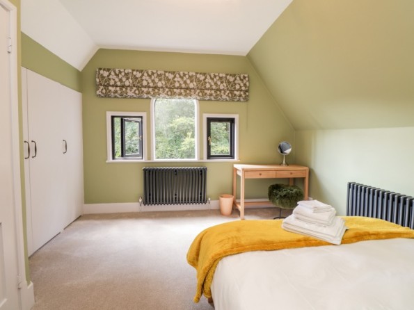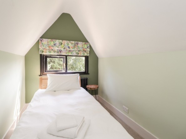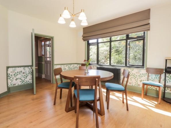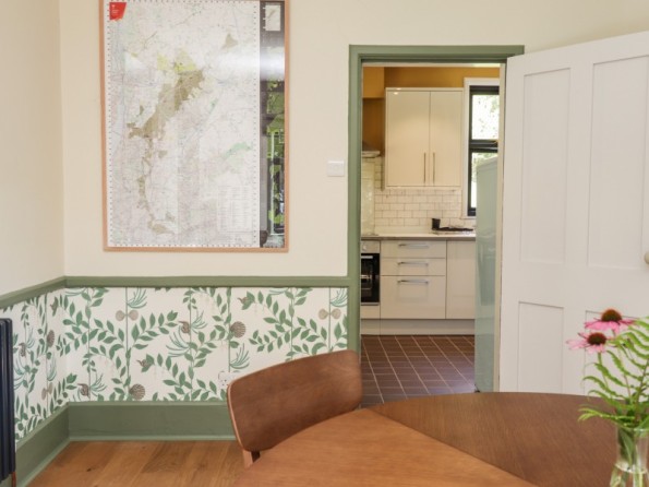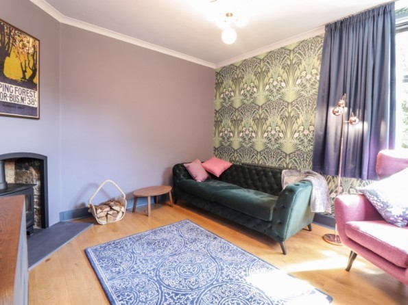 Resting in an idyllic position in the Epping Forest is Baldwin's Hill Cottage. This historic building has been transformed into a contemporary-styled holiday home. Park up in your private space and admire the beauty of the grounds; boasting a wildlife garden attracting local fauna. Seating areas are provided amongst the grass, which in early to mid-summer is waist high and bursting with wild flowers, it's an extremely scenic spot to base your escape. Enter into the porch with its characterful stained glass windows before making your way in to discover the beautiful sitting room, with a luxurious seating arrangement placed in front of the Smart TV and woodburning stove, it makes a fantastic social spot, with its beautiful botanical wallpaper tying with the theme of the property throughout. The well-equipped kitchen offers every essential for a self-catered stay, from its designer retro fridge/freezer to its dishwasher and even a washer-dryer, you can find all you could need here. Note: The ground-floor shower room is only accessible via a steep and narrow staircase, not suitable for those limited mobility; please take care.