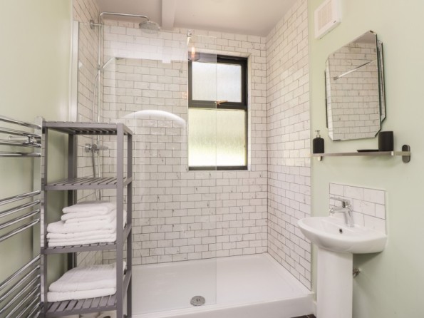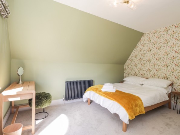 Three bedrooms: 2 x double, 1 x single. Ground-floor shower room with walk-in shower, basin, heated towel rail and WC. Kitchen. Dining room. Sitting room with woodburning stove