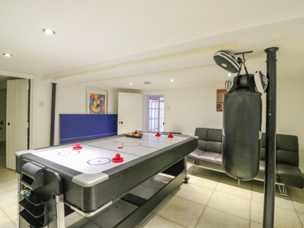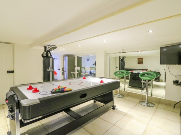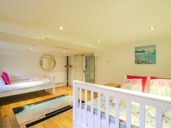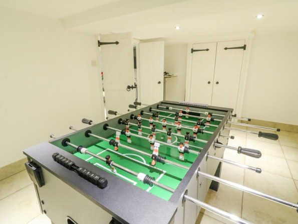 Over three floors. Four bedrooms, one ground floor king-size with, one ground floor king-size with single bed, two first floor king-size with ensuite. Ground floor family bathroom with bath, WC and hand basin. Games room with seating area. First floor open plan kitchen/dining/lounge with TV. Second floor seating area with balcony overlooking first floor.