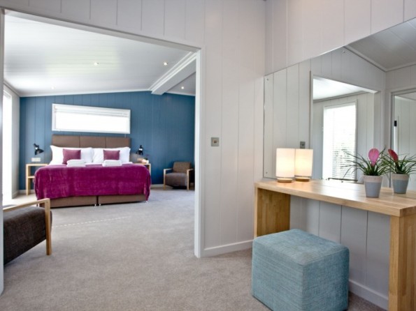 - Super king size bed, bedside tables with lamp, fitted wardrobe, dressing table, mirror and wall mounted Flatscreen TV