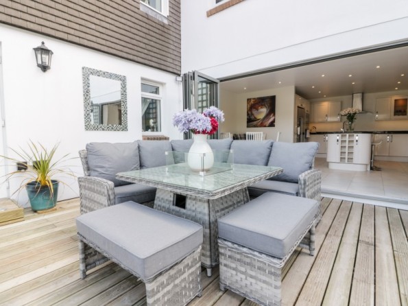 Beach Walk is a luxury, detached property, close to the beach in Porth, Cornwall. This property has four bedroom; two doubles, one of which has an en-suite shower room, and two twins, one of which has a zip/link feature, served by a family bathroom, sleeping eight guests in total. The property also comprises a cloakroom, a kitchen with a TV and dining table, a dining room and a sitting room. Outside there is off-road parking for three cars and an enclosed rear garden with decking, seating areas and an artificial lawn. Beach Walk is an idyllic retreat for a family getaway to the north Cornwall coast.